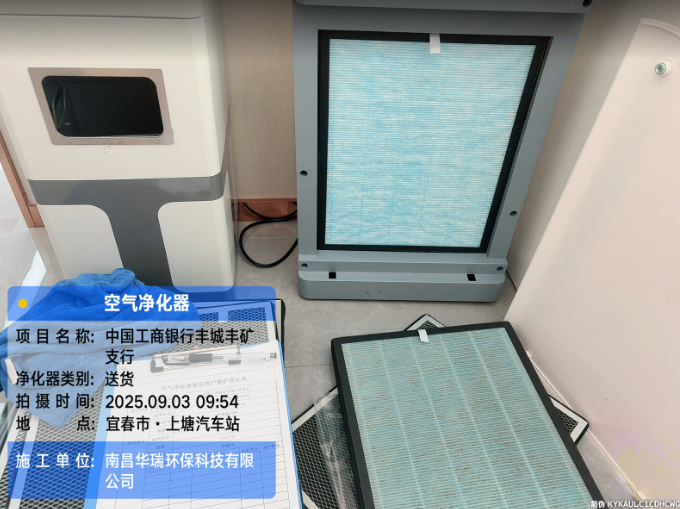 項目名稱:中國工商銀行豐城豐礦支行空氣凈化器安裝施工時間:2025年9月3日