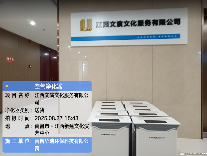 項目名稱:江西新建文化演藝中心安裝空氣凈化器施工時間:2025年8月27日