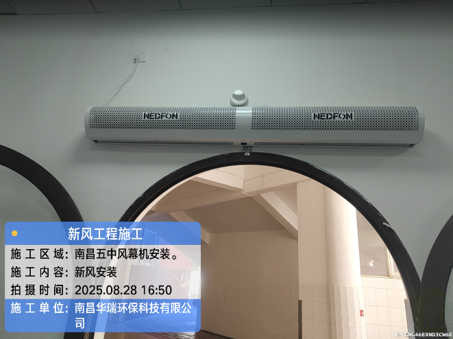 項目名稱:南昌五中風(fēng)幕機安裝施工時間:2025年8月28日