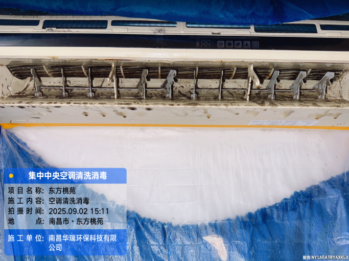 項目名稱:東方桃苑空調(diào)清洗消毒施工時間:2025年9月2日