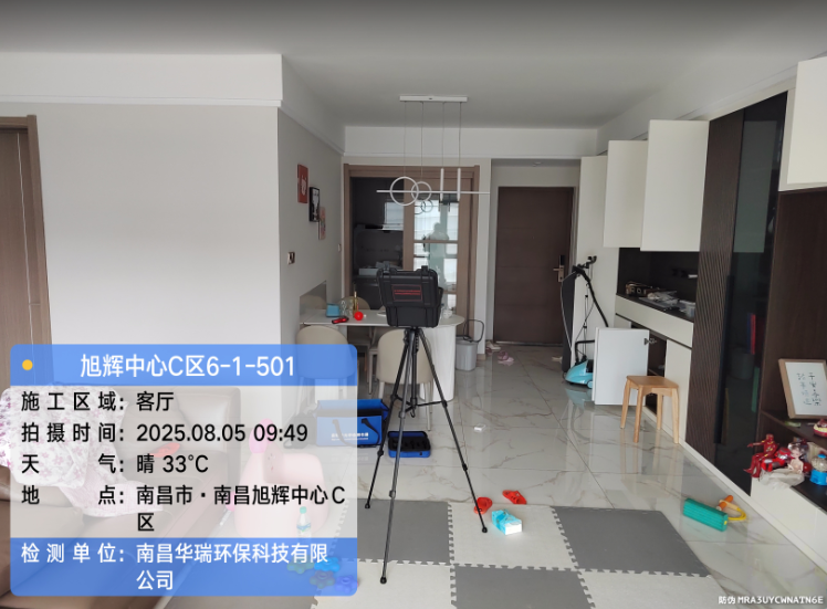 項目名稱:南昌旭輝中心c區(qū)甲醛檢測施工時間:2025年8月5日