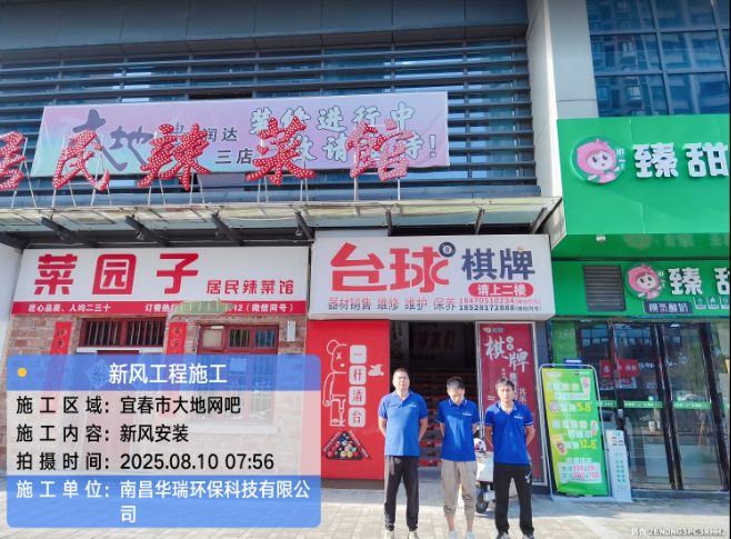 項目名稱:宜春市大地網吧新風安裝施工時間:2025年8月21日
