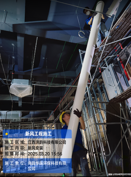 項目名稱:江西洪韻科技有限公司新風安裝施工時間:2025年8月20日